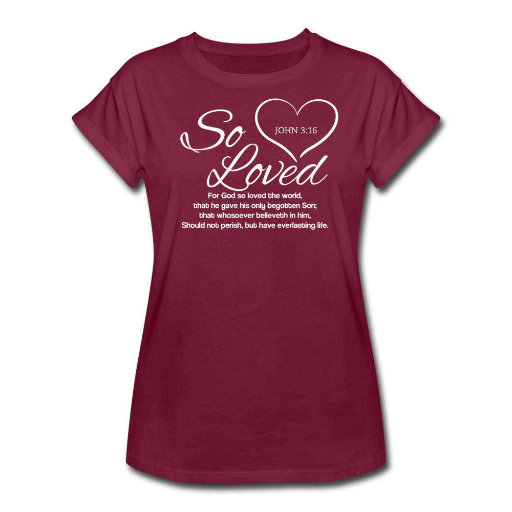 • Load image into Gallery viewer, SO LOVED-Women's Relaxed Fit T-Shirt - burgundy
